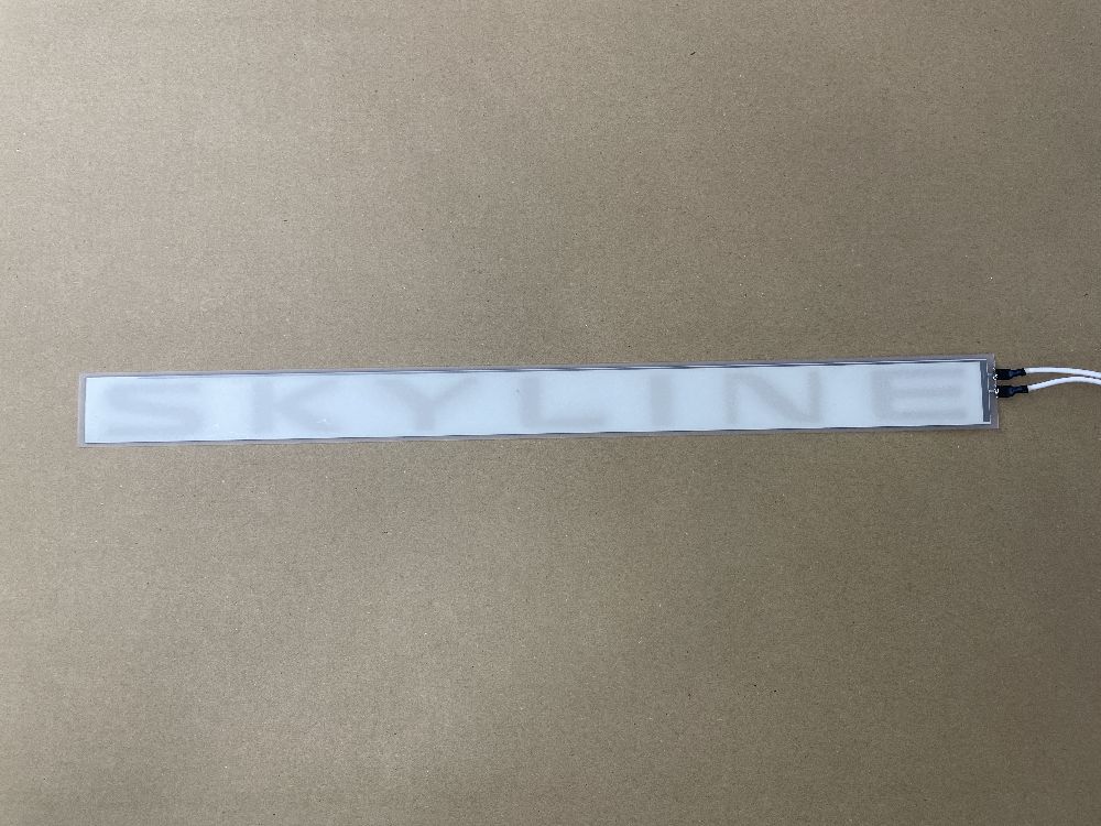 持込製作(塗装剥離はDIY):お客様の純正クリアガーニッシュを送っていただき、純正OPガーニッシュと同じようにLED化します。ただし表面のSKYLINEロゴの塗装剥離はDIYでお願いします。
